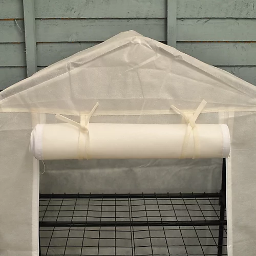 The cover has fixing ties at the base to keep it securely fastened to the greenhouse frame, and a roll up entrance makes access quick and easy.