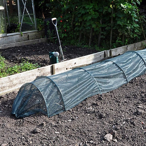 - Net covered grow tunnel.