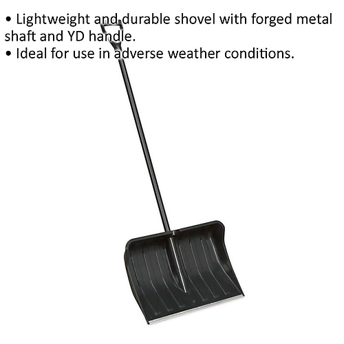 545mm Wide Head Snow Shovel – Forged Metal Shaft – Lightweight & DurableOverview: Lightweight and durable shovel with forged metal shaft and YD handle. Ideal for use in adverse weather conditions.Features:
