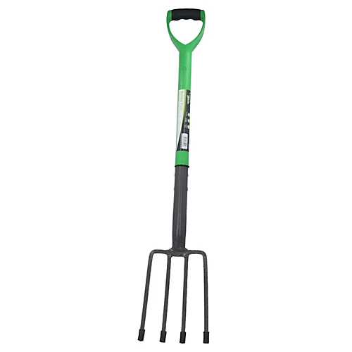 4 prong border fork by Green Blade Carbon Steel Head. Steel handle with plastic coating. Total length approx. 920mm (36″). Durable rust resistant finish.