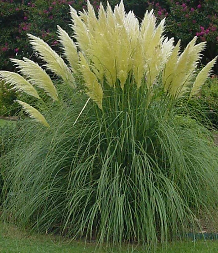 The White Pampas Grass is a superb specimen ornamental grass plant. This superb variety gives you large white fluffy flowers or plumes on tall stems approx 6-8ft tall and can spread to approx 5-6ft wide, perfect for growing as a specimen in the lawn or for using as a focal point in the border, can also be container grown on the patio. It will grow in any garden in full sun or semi-shade. You will receive 1 good size plant growing in a 3 litre pot.