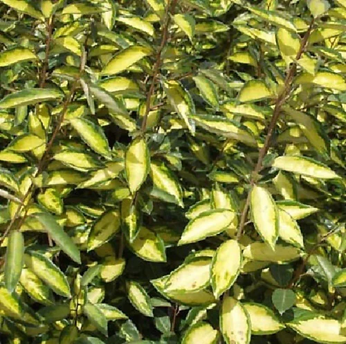 A fully hardy evergreen shrub, grown for its glossy, gold & green stunning variegated leaves which are a silvery colour on the underside. Drooping bunches of fragrant, bell-shaped, creamy-white flowers are borne in the autumn. This specimen shrub is perfect for bringing some interest into a shady part of a border or can be used as informal, evergreen specimen flowering hedge. A tough plant which will tolerate most soils, will grow in coastal and exposed areas. Provides all year interest. Plant in full sun or semi-shade, will tolerate most soil types. will grow to a height of approx 6-8ft tall, but can be pruned to desired height.