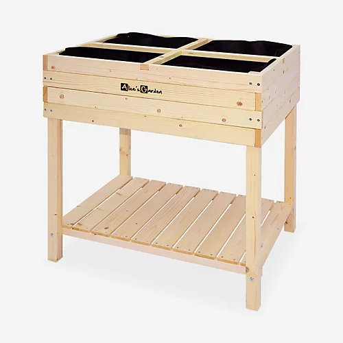 Grow your vegetables fruit and herbs even if you have very little space to garden!Elevated square planter for terrace garden balcony.Vegetable garden divided into 4 for above ground cultivationShelf to put plants potting soil or other accessories Features : Elevated planter Grow your vegetables in a small space! Accessible for allTechnical features:Ideal for planting herbs fruit and vegetables on a small area (balcony terrace or garden). Above ground cultivation without lots of maintenance. This elevated vegetable garden will protect your plants from insects. You can place your watering can potting soil or any other object on the shelf below.Main material: Finnish spruceGeotextile included serves to filter the water without allowing the soil to pass through.4 dividing crossbars Capacity of 65L dimensions : L80 x W60 x H80cmVegetable garden: L80 x W60 x H24cmVegetable garden interior size: L76 x W56 x H21cm