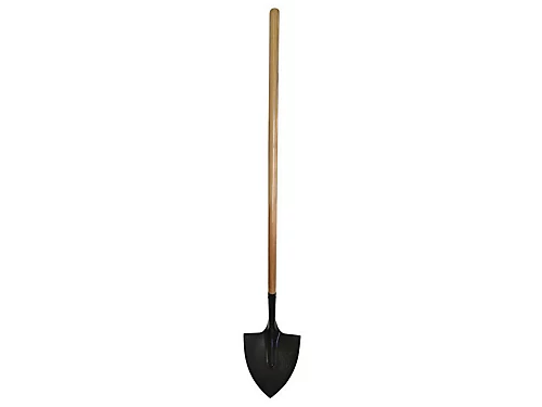 The Faithfull open socket round mouth shovel fitted with a long straight handle traditionally used in the West Country.