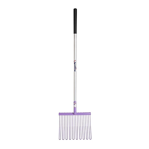 • Rounded tines pick up debris and wet bedding without damaging the rubber mat