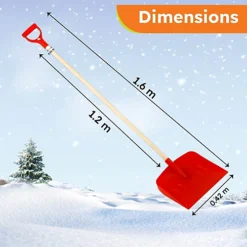 EarlyGrow 1.6m Snow Shovel With 42.5cm Wide Scoop And D Handle – Red