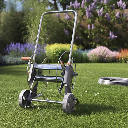 This GoodHome reel is a great solution for neatly storing your hose pipe. It has wheels to help you easily move your hose pipe around your garden. Suitable for use with 50m of hosepipe (12.5mm).