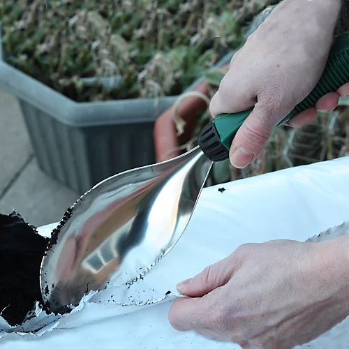 - The scoop is also serrated on both edges – perfect for cutting roots and opening bags of mulch and fertiliser