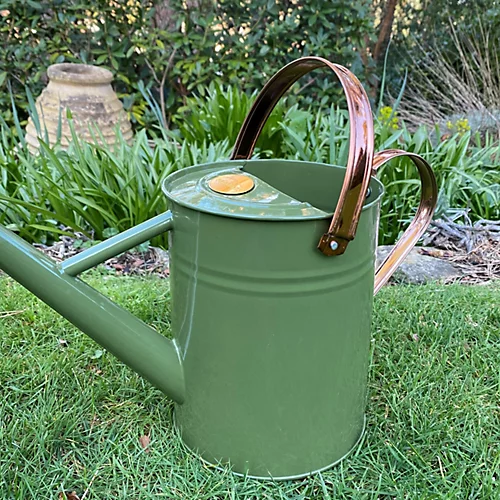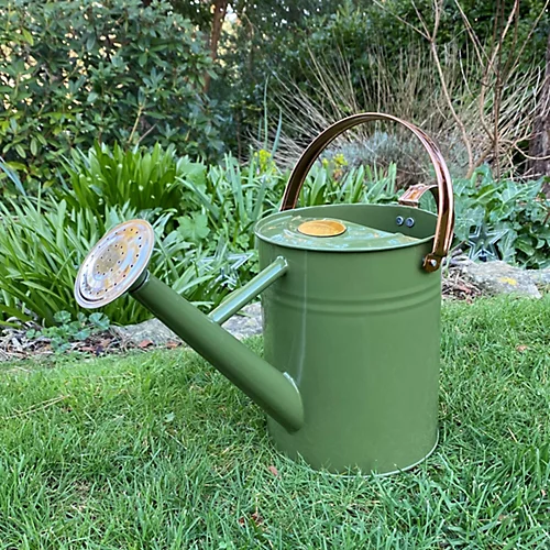 This watering can is both practical and decorative. Crafted in a lovely tweed green colour, the complementary copper-coloured handles and rose give the can a stylish finish. Made from painted galvanised steel, it is well protected against rust for years of good use watering your garden plants. Constructed from strong materials, it features a folding handle and detachable watering rose and can hold up to 3.5 litres of liquid.
