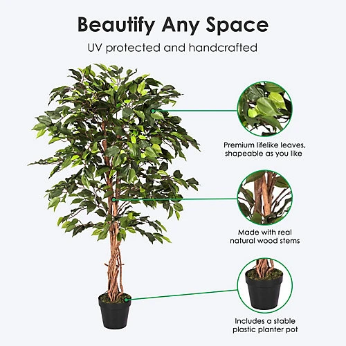 - Top quality, lifelike ficus tree with natural stem/trunk and replica green leaves.