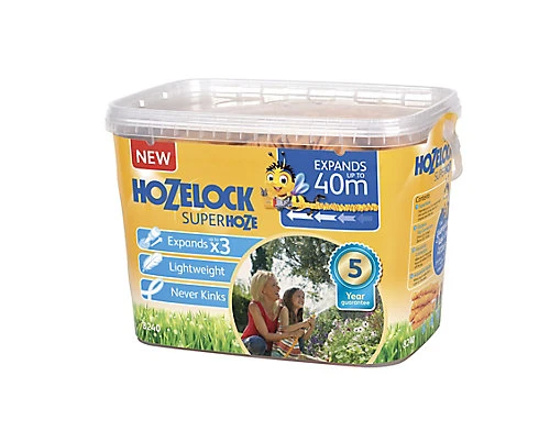 The Hozelock 40m superhoze is a flexible and expanding hosepipe. It has the ability to expand up to three times its original length and can quickly shrink back to its original size after use.