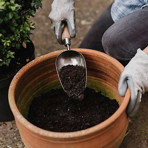 Ideal for use in scooping compost into pots, troughs and hanging baskets.