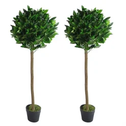 Leaf Pair Of 120cm (4ft) Plain Stem Artificial Topiary Bay Laurel Ball Trees