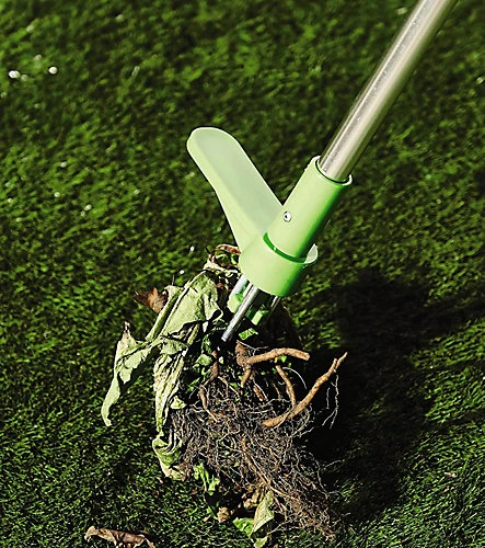 - Easy to use; Simply centre the three prongs over the weed and push down firmly to dislodge it, roots and all, then push the spring-loaded top to eject the weed