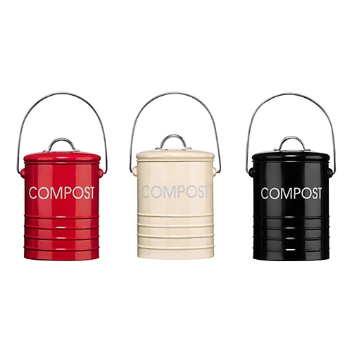 Made from strong metal, this eco-friendly compost bin has a black powder coated finish for enhanced durability. Its lid features an internal black sponge filter to trap odours, while its silver metal handle makes it easy to remove. A wide silver metal carry handle coordinates with the silver compost lettering on its front.