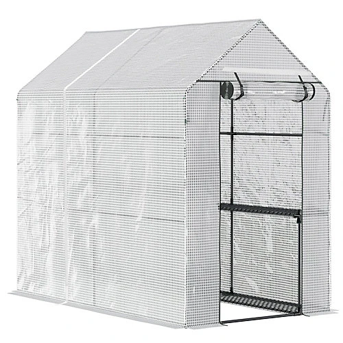 Looking for a way to grow crops all year round? Do it with this Outsunny walk-in greenhouse. Steel frame for a tough core, it’s fitted with a PE plastic cover for shelter against the elements. The roll-up door ensures easy access. Inside, there are four wired panel for easy storage and organisation. Update your garden, grow plants and fall in love with your garden all over again.