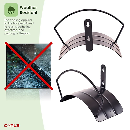 Store your hose neatly and avoid bends with the wall mounted hose piper hanger.