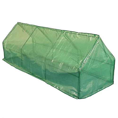 The greenhouse has a sturdy tubular steel frame and heavy-duty reinforced plastic mesh cover with a roll-up zipped door which not only provides easy access, but ventilation in the warmer months. The cover has 10cm excess at the bottom which can be buried to provide extra security in storms and strong winds.