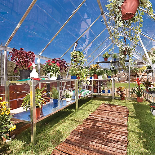 The Octave 8’ is a spacious greenhouse for year-round gardening. The large workspace and wide double door provides the most enthusiastic gardener with plenty of growing room for seeding and storing tools and supplies.