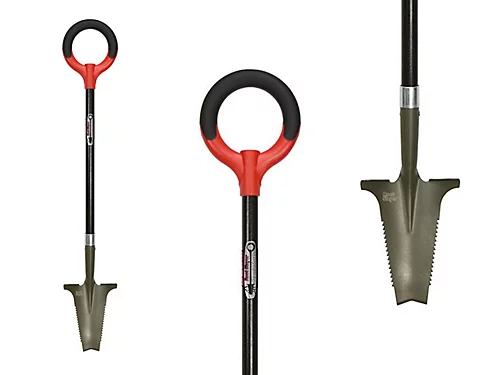A lightweight version of the original Root Slayer Shovel with a blade that is about 70% of the size and a lightweight super durable fiberglass shaft.