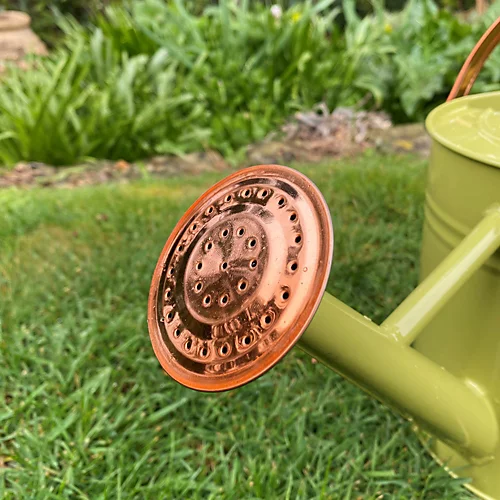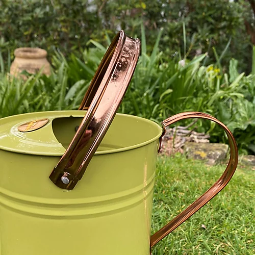This watering can is both practical and decorative. Crafted in an elegant sage green colour, the complementary copper-coloured handles and rose give the can a stylish finish. Made from painted galvanised steel, it is well protected against rust for years of good use watering your garden plants. Constructed from strong materials, it features a folding handle and detachable watering rose and can hold up to 3.5 litres of liquid.