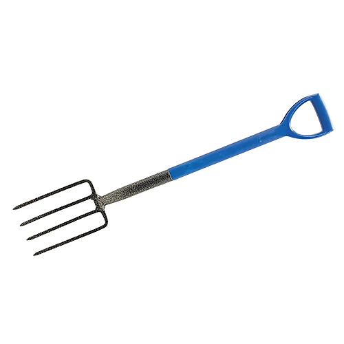 930mm. Epoxy-coated hammer-finished tines. Hardened and tempered for long life. Polypropylene-coated steel shaft with PYD handle. For digging, soil preparation and planting. Head L x W: 230 x 140mm.