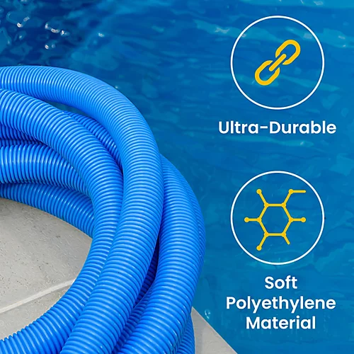 This hose pipe is suitable for filter pumps, skimmers or cleaning accessories with the corresponding bushing diameter, made from a low-density polyethylene which makes it lightweight and durable. The strong flexible hose pipe is will provide you with many years of usage as it is resistant to UV and chlorine, this means that you can leave the pipe outside in the sun and the chemical used to clean your pool water will also not damage the integrity of the pipe.