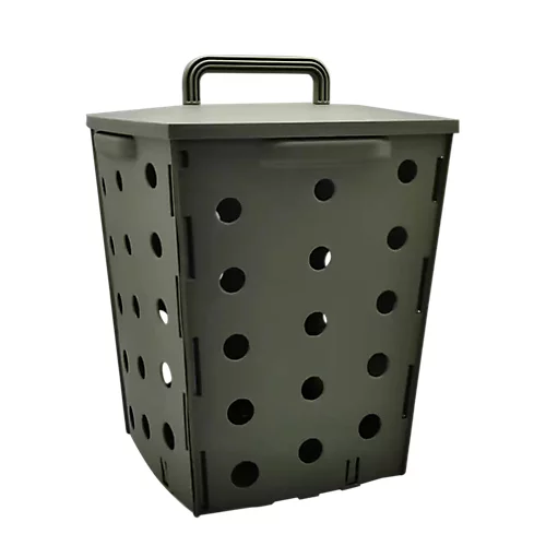 - This submergible compost bin is great for breaking down kitchen fruit and vegetable scraps. The holes allow worms to ender the bin and break down the scraps with the nutrients being drawn back out into the surrounding soil.