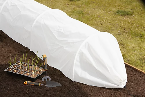 This fleece tunnel provides protection for your tender plants from frost, harsh wind and rain.