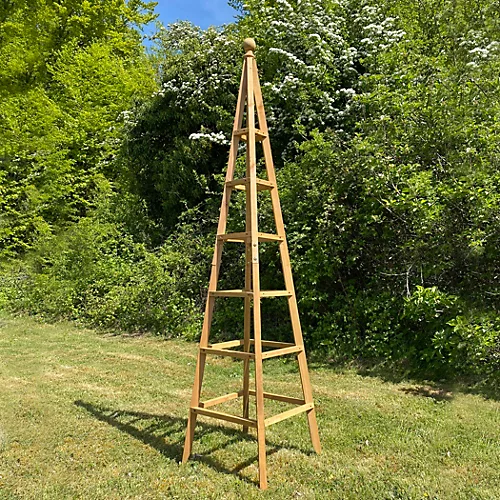 This 1.9m tall wooden garden obelisk is classically styled and made from treated wood. It is strong enough to support the most vigorous of climbing plants; and will be a great addition to any garden in flower beds, borders and patio planters.